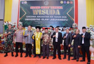 Labuhanbatu, wantaranews.com-Wakil Bupati Labuhanbatu, H. Jamri, menghadiri secara langsung prosesi Wisuda Sarjana Strata-1 Universitas Islam Labuhanbatu (UNISLA) Angkatan XIX Tahun 2026 yang digelar di Ballroom Suzuya Rantauprapat, Sabtu (14/02/2026). Kegiatan wisuda tersebut turut dihadiri unsur Forkopimda, Ketua TP PKK Labuhanbatu, perwakilan LLDIKTI Wilayah Sumatera Utara, pengurus Yayasan UNISLA, perwakilan Pemerintah Kabupaten Labuhanbatu Utara, para […]