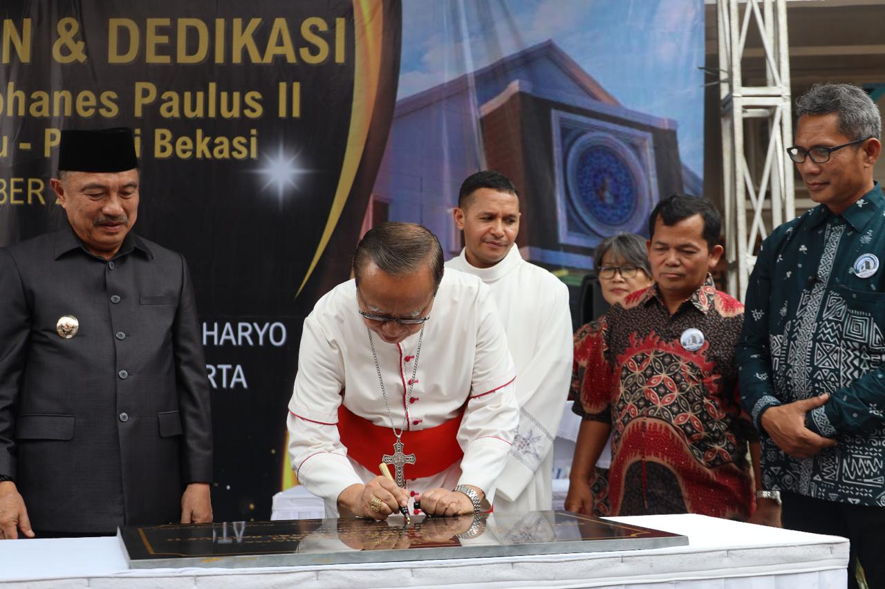 Wantaranews, Kota Bekasi – Wakil Wali Kota Bekasi Abdul Harris Bobihoe hadiri acara pemberkatan Gereja Katolik Santo Yohanes Paulus II, Rawalumbu, Kota Bekasi.