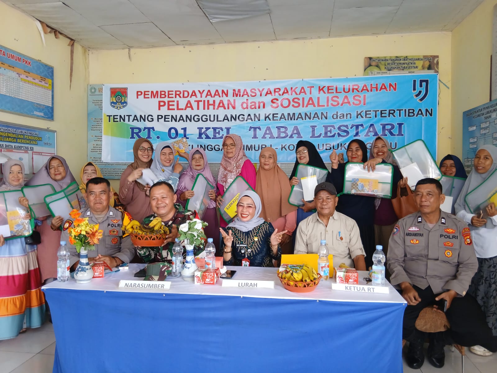 Dari pihak Kepolisian, hadir PS. Kanit Binmas Polsek Lubuklinggau Timur, Aiptu Ardiansyah, didampingi oleh Bhabinkamtibmas Kelurahan Taba Lestari, Bripka Farid Sukdi. Sementara dari unsur TNI, hadir Babinsa Sertu Martan. Sinergi ketiga pilar ini disambut baik oleh Lurah Taba Lestari dan seluruh peserta sosialisasi.