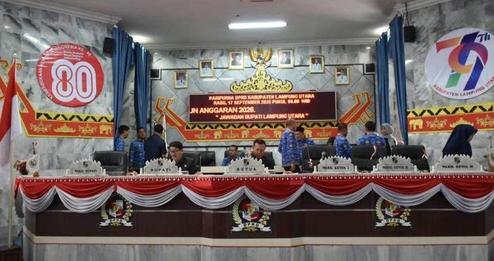 DPRD Kabupaten Lampung Utara menggelar Rapat Paripurna dalam rangka pembahasan Kebijakan Umum Anggaran (KUA) dan Prioritas Plafon Anggaran Sementara (PPAS) APBD Kabupaten Lampung Utara Tahun Anggaran 2026, Rabu (17/9/2025).