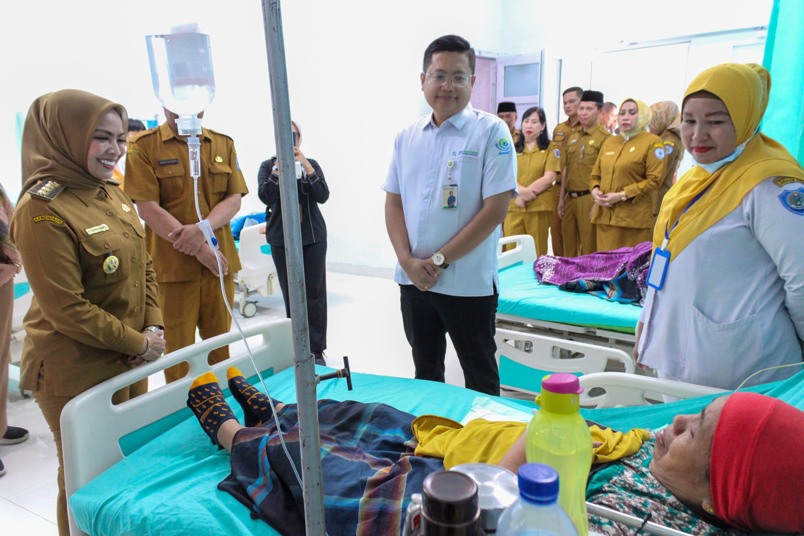 Usai melaunching program UHC, Bupati Maya meninjau lokasi dan ruang pelayanan kesehatan RSUD Rantauprapat, disana Bupati juga menyapa pasien guna memastikan para pasien memperoleh pelayanan yang baik.(Zulkarnain)