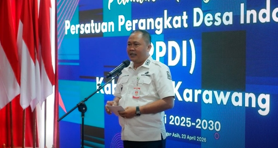 Wakil Bupati H. Maslani mewakili Bupati Karawang menghadiri acara pelantikan pengurus Persatuan Perangkat Desa Indonesia (PPDI) Kabupaten Karawang yang digelar pada Kamis (23/4/2026) di Bale Indung Nyi Pager Asih.