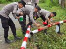 Bersama warga sekitar, Bripka Ilyas bahu-membahu memantau proses evakuasi batang pohon yang sempat mengganggu mobilitas masyarakat. Langkah cepat ini diambil guna mencegah terjadinya kemacetan serta mengantisipasi adanya korban luka akibat dahan pohon yang masih rentan patah.