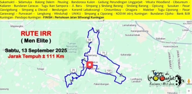 Ketua Panitia TDL 2025, dr. Yanuar Firdaus, menjelaskan bahwa rute lomba tahun ini dirancang lebih luas, menyusuri lintasan sepanjang kurang lebih 111 kilometer dan akan melewati 17 kecamatan di wilayah Kabupaten Kuningan. Jalur tersebut dipilih agar mampu menghadirkan tantangan teknis yang beragam bagi peserta sekaligus menampilkan keindahan lanskap Kuningan, mulai dari kawasan perbukitan, perkotaan, hingga perdesaan.