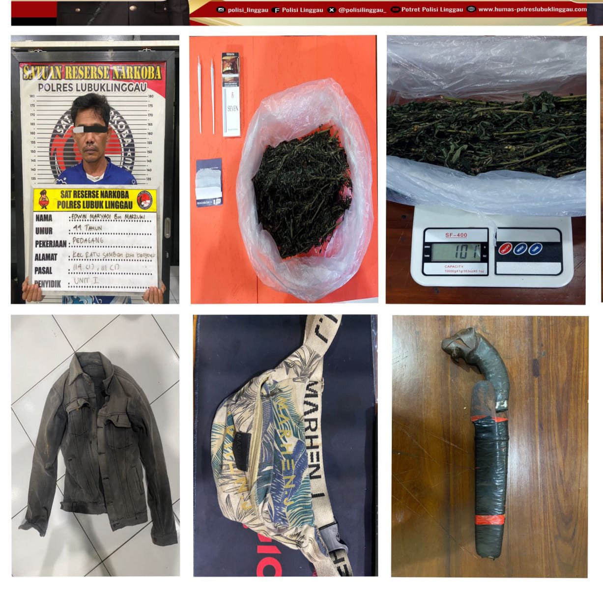 Dari tangan tersangka EM, petugas berhasil menyita sejumlah barang bukti yang menguatkan dugaan tindak pidana narkotika. Barang bukti utama yang ditemukan adalah satu kantong plastik bening berisi tanaman kering yang diduga kuat sebagai narkotika golongan I jenis Ganja, dengan berat bruto mencapai 101 gram. Tanaman terlarang ini ditemukan petugas tersimpan rapi di dalam kantong jaket bagian depan sebelah kiri tersangka.